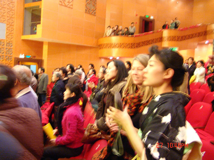晚上七点十五分,演出准时开演。在满台春色浪漫背景和袅袅越音中,身着纷红罗衫、娉婷阿娜的荷花仙子们翩翩起舞。美丽善良白娘子、俊秀厚道的许仙、冥顽不化的法海,以及聪明率性的青儿等等,一个一个美丽灵秀鲜活生动的形象经同学们的演绎带给了上海观众一次一次地惊喜,掌声与叫好声声声不绝,原本不少只抱着随便来看看的戏迷被同学们文武俱佳的表演深深吸引。就在场间休息时分,记者再次从售票处了解到,在短短的十分钟内又出票进款5000多元,不少观众趁着中场休息将第二场和第三场的票也买了,这对每场定20至80元的票价实在不算是少数了。就连承担此次演出的上海剧场负责人
