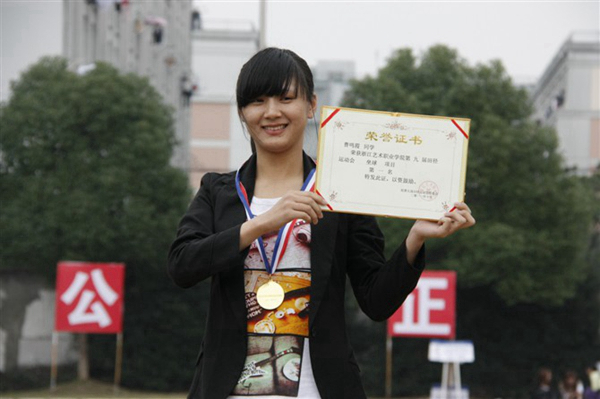 她是家里唯一的希望。父母收入不高,为了不让父母担心、失望,她努力学习专业知识、积极参与院系活动。在同学们的眼中,曹鸣霞是要强的,她不会因为困难而放弃任何一件事情。进校后,她首次代表学院参加浙江省大学生运动会,虽然没有获得名次,但她没有气馁。今年11月,她毅然坚持再一次参加省大学生运动会。功夫不负有心人,最终,她以出色的成绩获得女子标枪第六名,打破学院在省大学生田径锦标赛零的突破。在学院里,总能看见曹鸣霞忙碌的身影。她以积极自信的精神面貌去参加各项活动,如代表学院的反邪教社团参加“滨江六校的反邪知识竞赛”、参加学院英语周的单词竞赛、文管系的毕业晚会演出等。作为班级团支书,她准备材料,组织团员积极开展深入学习新党章、中国梦等系列专题班会;作为东冠校区学生会副主席,她配合招生就业办开展就业指导月的系列活动,邀请专家、教师前来讲座,联系师哥师姐畅谈就业感受,组织开展面试大赛、简历大赛等活动,期间,她付出了大量的心血。