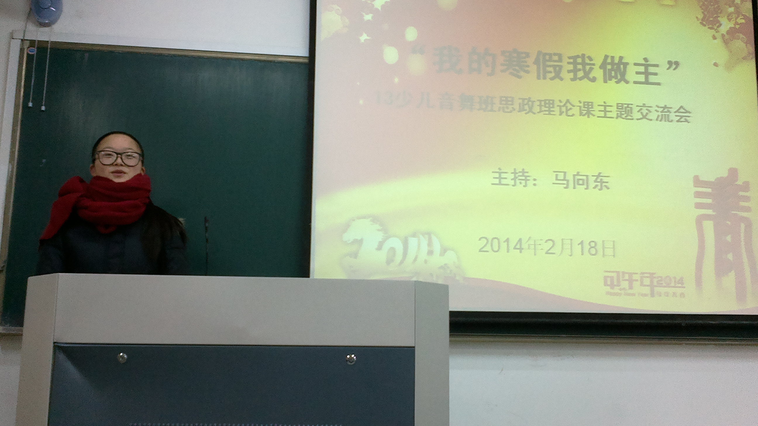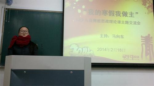 交流会内容丰富,90后的同学们意兴盎然交流寒假经历和见闻。舞美班闫东同学去北京参观美术展,一呆十几天,心中涌起“向大师看齐”的神圣感,感受到美术大师们的奇妙想象力;俞珂瑶同学讲述参观名人纪念馆,寻找家乡历史名人足迹,了解家乡发展变化的内心感受。少儿音舞班李祉墨同学感慨“早上四点起来赶火车,去上海观看‘我的一个梦’的艺术展览,领略到艺术的独特魅力。”有的同学称赞春晚魔术的高超,“小彩旗”的坚韧;有的同学感叹寒假打工经历,体验赚钱的不易,丰富人生阅历;还有同学谈了回母校看望老师、与家人团聚等体会;不少同学畅谈家乡春节风俗,如何过新年,更是引人入胜,赢得喝彩和掌声。一堂思政课的开学第一课,让同学们将各自作主的寒假生活的千姿百态呈现出来,别有一番风趣与韵味。