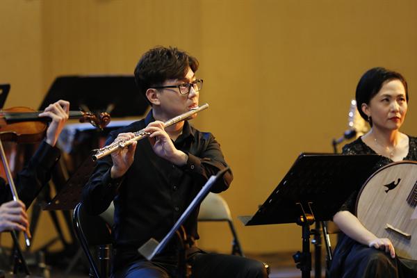 全场音乐会的乐曲有诗意,有越韵,有现代音乐词汇彼此相交融。作曲家丁樱的《剡水曲》,探索中国音乐的张力表现,虚实之变、动静之变、清浊之变,有着强烈深沉的音乐表现;青年作曲家景新的《神隐西罨居》,则运用了浙江仙居童谣的音乐素材,用西洋管弦乐与中国拉弦乐器、弹拨乐器共同演绎。这种新颖的音响与结构有着当代年轻作曲家的表达方式,不同乐器在乐曲进行中流淌、静止,而又互相编织。