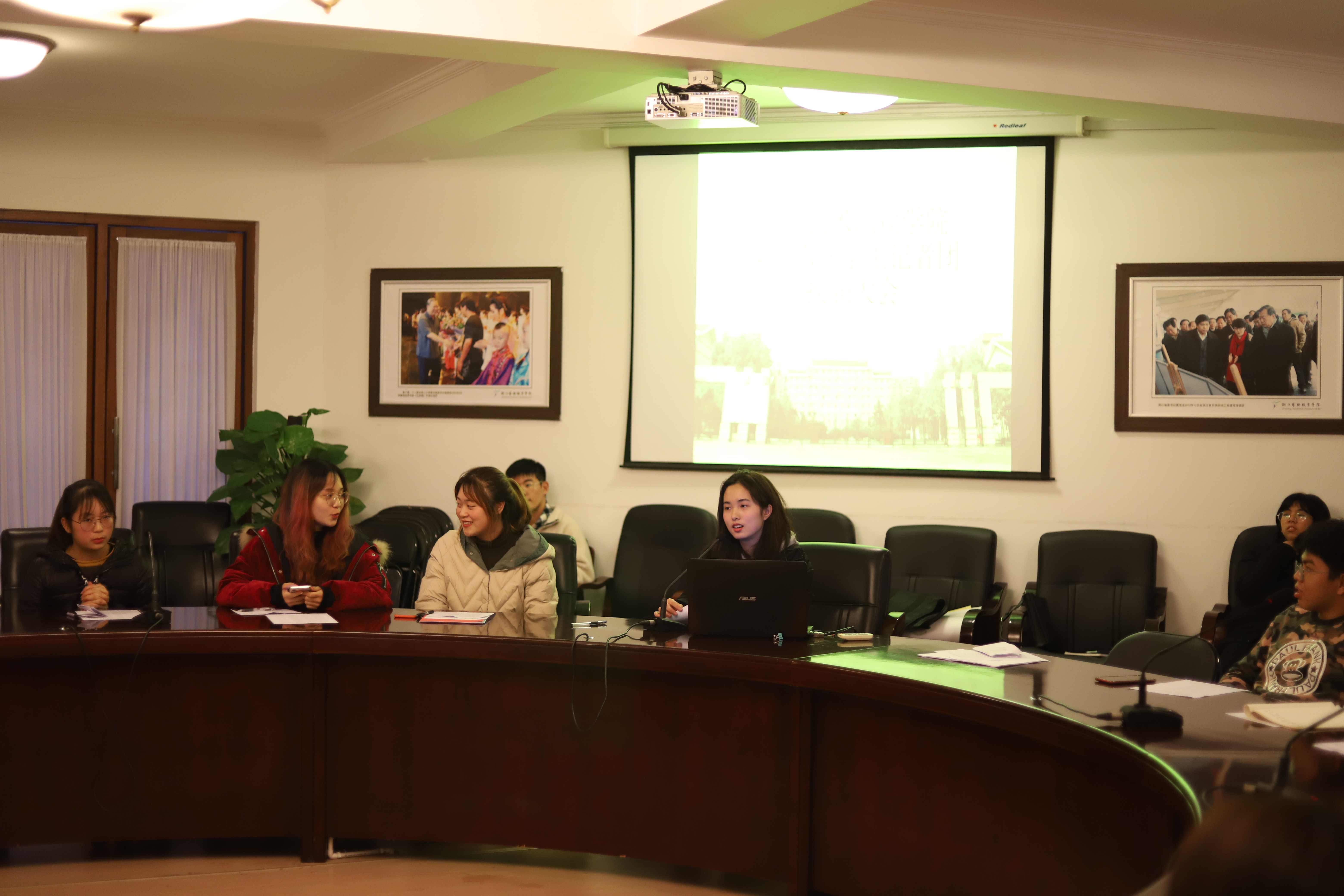 通过竞聘和评议,最终陈彦君担任团长,孟亭担任首席记者,郑添引、李佳燕担任副团长,曹涵笑、傅于轩、杨泽宇、李俊伟、何懿欣、蔡尧、王丽冰、龙俊、吴静、王倩芸等同学分别担任记者团各部门负责人。