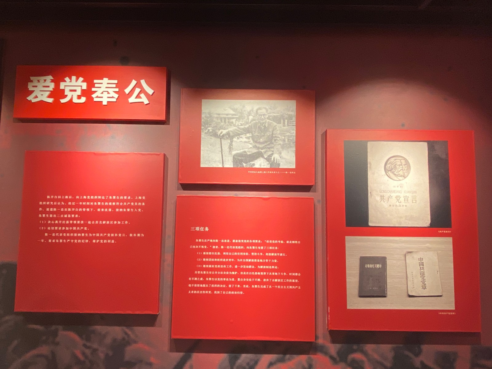 “为人不忘自重、做事不忘公平、掌权不忘廉政、从政不忘百姓”在革命烈士朱聚生纪念馆的墙壁上写着他爱党奉公的信念。革命烈士朱聚生出生于沈荡,在学生时代他就开始从事革命工作。1949年5月7日深夜,在黎明前的最后一刻,倒在敌人的枪口下,遇害时年仅25岁虽然时光已流逝了半个多世纪,但我们今天听着朱聚生的故事,依然是那样亲切感人,栩栩如生。从国难思救、舍业为民、提笔创报、是庶为党、爱党奉公、誓死入党、不忘使命慷慨就义的过程,让大家再次走入当年的岁月,感受到革命先烈胸怀天下、坚贞不屈的感人事迹,通过共同追忆这段峥嵘岁月,接受革命精神洗礼,坚定社会主义前进方向。