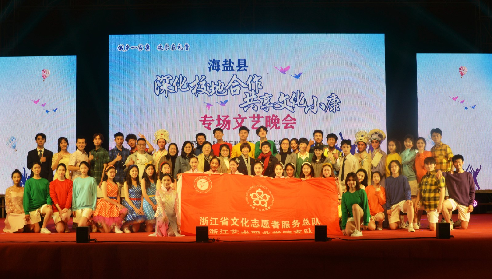 为助力2020年中国长三角·海盐南北湖文化旅游节,深化校地合作,发挥专业优势,共享文化小康。戏剧系师生党员、入党积极分子、优秀青年团员共同参与专场文艺演出,为当地居民送去文化盛宴演出既有乡音民俗,也有人文情怀;既有讲述中国故事,也有展现抗疫精神师生用丰富多彩的文艺节目将党的声音和关怀传递到了百姓家门口,极大丰富了群众文化生活,弘扬优秀传统文化,增强团结凝聚力。