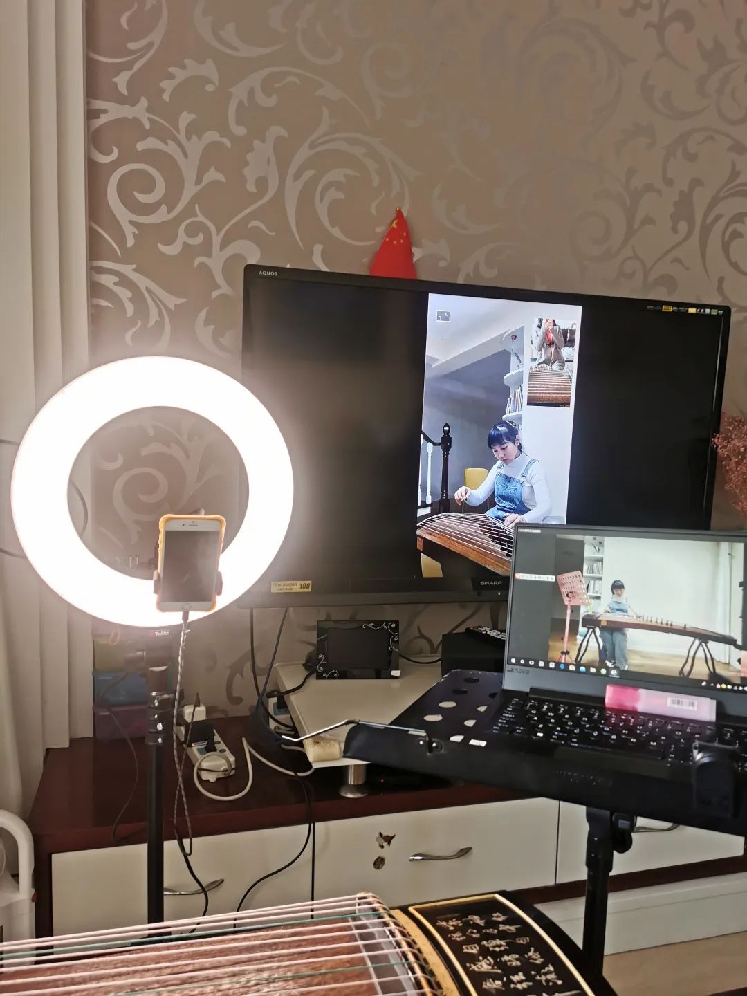 浙艺音乐系教师夏金瓯所授的课程是古筝,因为音乐类专业对声音的要求很高,她反复尝试了微信、QQ、腾讯会议等软件,发现视频时音质都有受损,追求完美的她,经过不懈努力,终于找到了一款适合教学的软件,叫“一起练琴”,这个软件声音还原度很高,她说,这样就可以听见学生们弹奏的每一个细节。