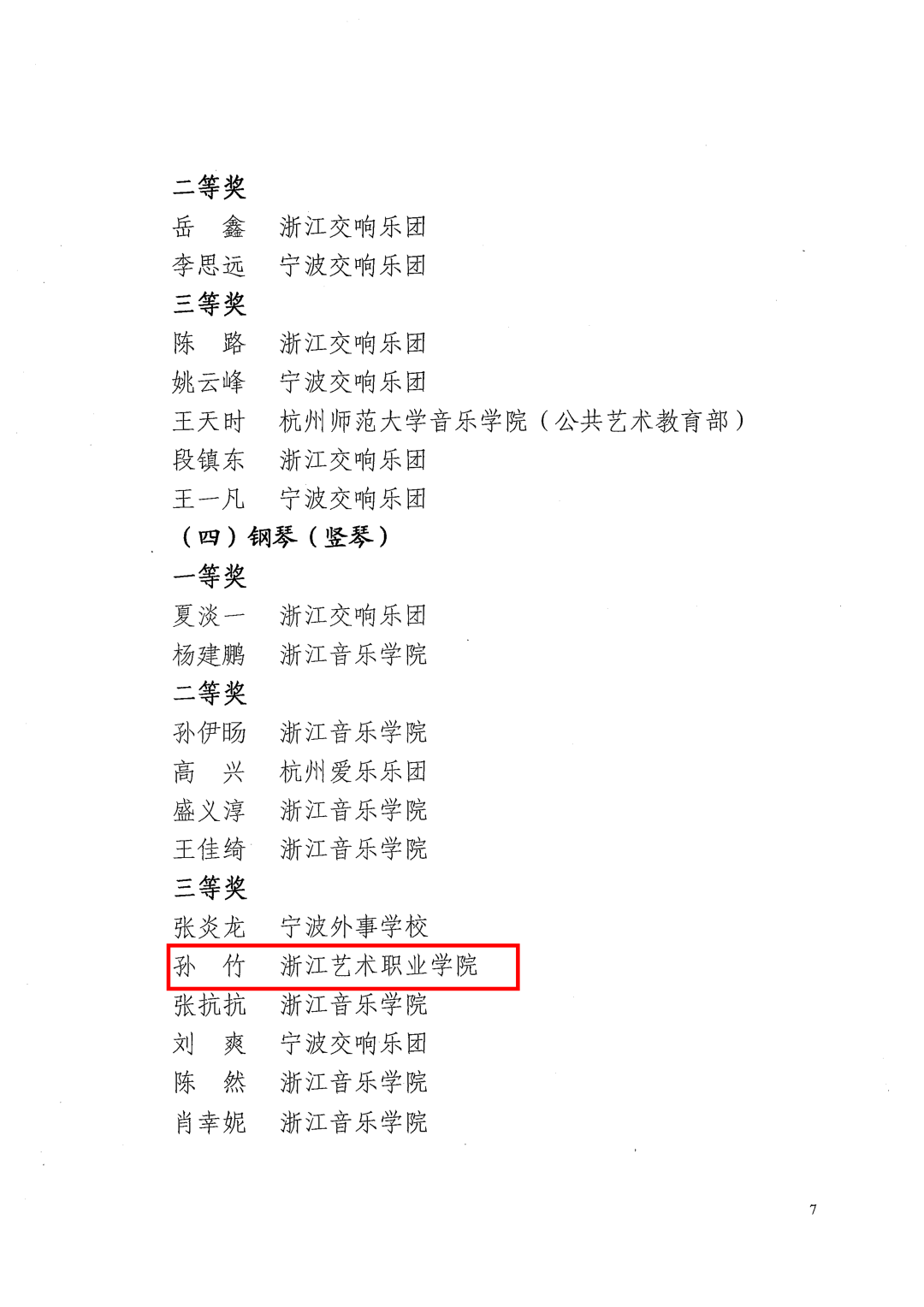孙竹(教师,钢琴竖琴组)