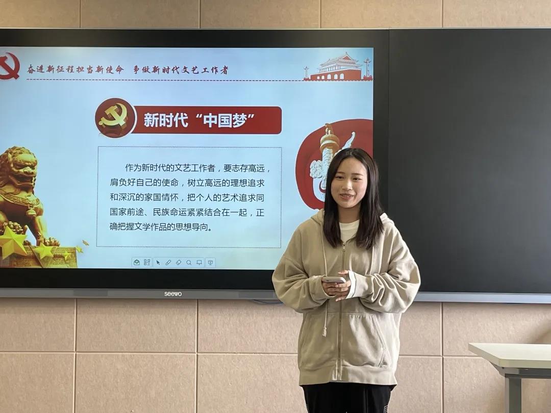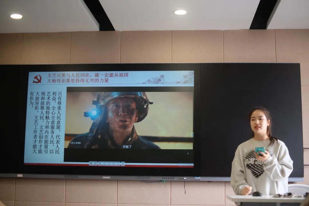 在微党课比赛过程中,戏剧系第38期的14名学员依次进行主题党课演讲,他们结合自己参与的文艺活动、创作的艺术作品为出发点,用鲜明的事例表明文艺工作的重要性,展现担当起文艺重任的决心和信心。