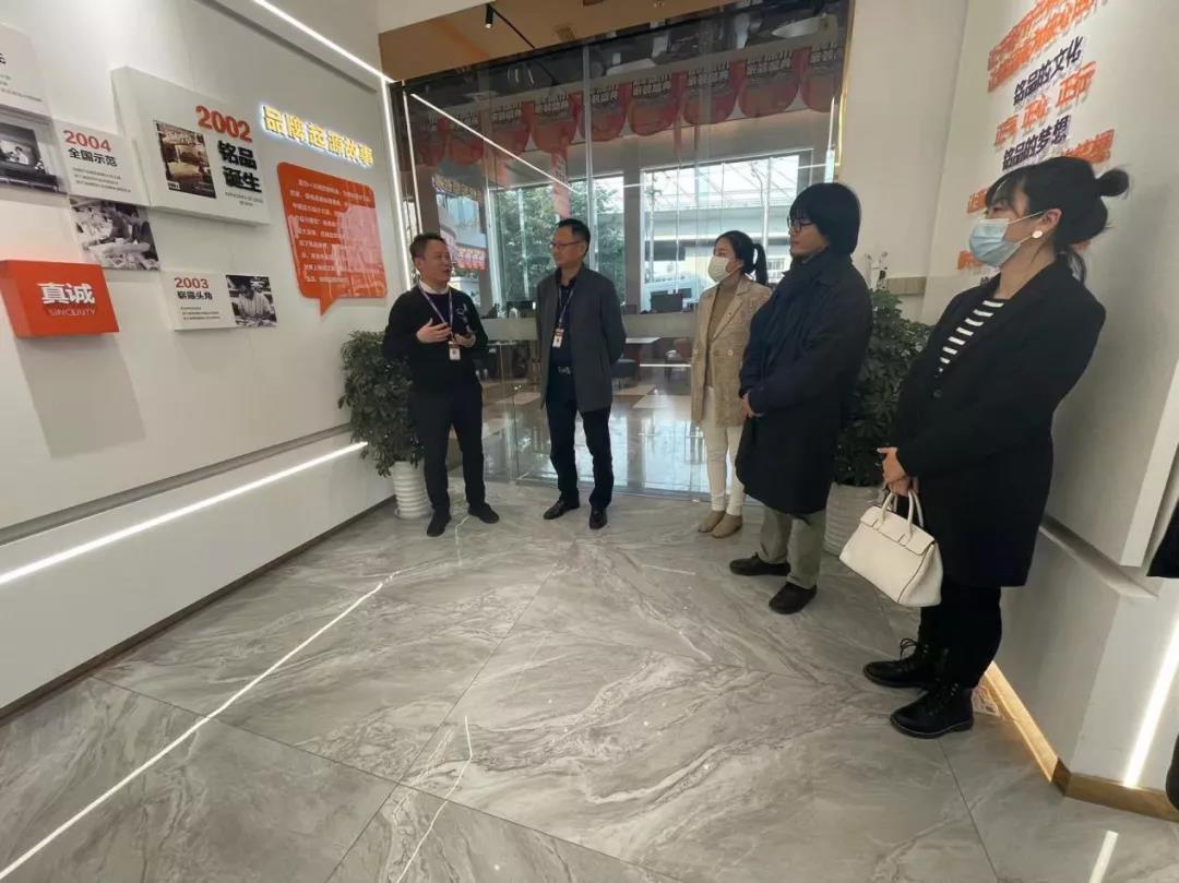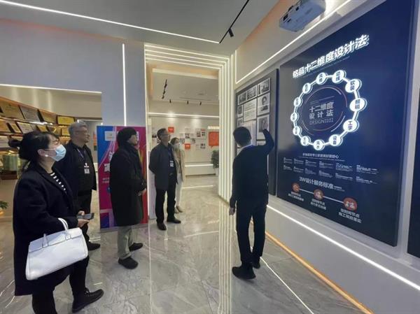 浙江铭品装饰工程有限公司运营中心相关负责人陪同美术系一行参观了企业展厅及工法间展厅,介绍了企业的发展历史、企业文化、行业荣誉以及相关独创施工工艺、品牌材料等内容。