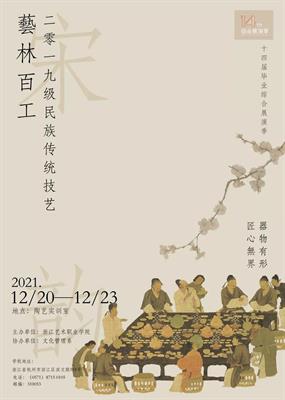 2021年12月20-23日,“宋韵风雅 艺林百工”——文化管理系2022届民族传统技艺专业毕业展将在10号楼一楼(陶艺实训室)开展,诚邀社会各界人士前来观展。