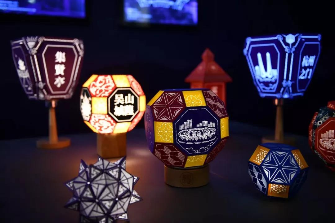 设计说明:本作品以仙居针刺无骨花灯为研究基础,以表现杭州的夜景为主题,两者巧妙融合。在设计中对传统花灯的图案与制作技艺进行创新,并衍生出系列产品。在内容上,主要设计了十个极具代表性的杭州夜景,并配以相应的字体设计与装饰图形;在图案上,突破了传统针刺无骨花灯上等大的点,用大小不同的点来表现杭州夜景的灯光;在技艺上,采用了现代化技术激光雕刻点状图案,代替了传统的手工针刺。经创新的无骨花灯设计,图案更具现代感,制作技艺周期更短,视觉冲击力更强。