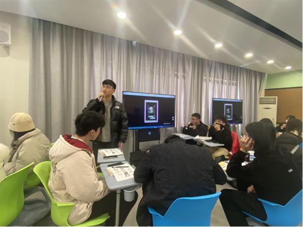 叶峰泉从海报设计的专业角度作点评。他对同学们的海报设计表示肯定,从海报结构编排、设计元素选取、图形轮廓设定和色彩搭配等角度进行逐一点评,并鼓励同学们发挥自己长处进行原创,保持初心匠心设计,在未来呈现出更好的作品。胡卓群从《马克思主义基本原理》课程的教学内容出发,讲解了如何区分马克思和马克思主义,并结合最新的十九届六中全会《决议》精神阐释习近平新时代中国特色社会主义思想是当代中国马克思主义、二十一世纪马克思主义,是中华文化和中国精神的时代精华,实现了马克思主义中国化新的飞跃。