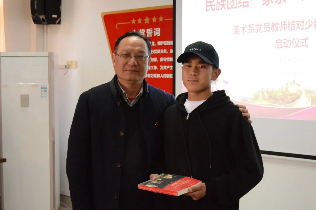 党员教师为结对的少数民族学生亲切交流,并赠送了书籍,师生们互留联系方式并合影留念。