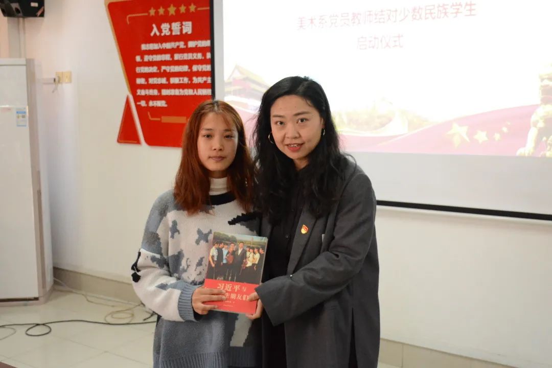 美术系党总支书记汪琳作动员讲话。她指出,今年是中国共产党百年华诞,中国共产党矢志不渝为人民谋幸福,为民族谋复兴,为世界谋大同。我们要深入践行守望相助理念,深化民族团结进步教育,铸牢中华民族共同体意识,促进各民族像石榴籽一样紧紧抱在一起。希望通过结对,努力提升美术系对少数民族学生的教育、管理和服务水平,充分发挥党员教师立德树人先锋模范作用,进一步加强与同学们的沟通交流,切实帮助同学们解决学习、生活中遇到的实际困难,帮助同学们更好地成长成才。