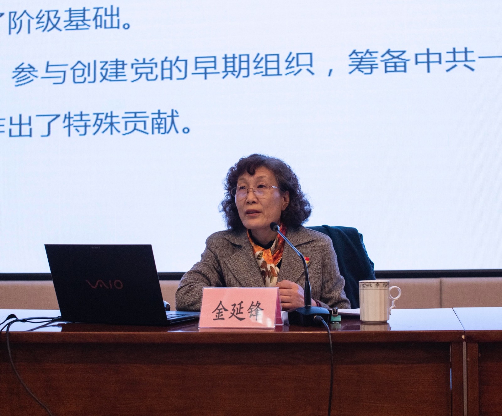 讲堂第三环节是“前沿动态”专题讲座。金延锋以《百折不挠铸就百年辉煌》为主题,用高度凝练的语言和极富感染力的讲解,梳理了中国共产党从诞生到不断发展壮大这一百年波澜壮阔的历史,梳理了党的历史发展脉络,阐释了党团结带领全国各族人民争取民族独立、人民解放和实现国家繁荣富强、人民共同富裕这两大历史任务而不懈奋斗这一中国共产党百年历史发展的主题主线,以及党的历史发展的主流本质,让大家更加清晰的了解了党的历史功绩及其背后深刻的历史根源。她指出,党进行的“不懈奋斗史”“理论创新史”“自身建设史”,是中国共产党百年历史的主流本质。党的百年历史,是一部践行党的初心使命的历史,是一部党与人民心连心、同呼吸、共命运、齐奋斗的历史,是一部不断推进马克思主义中国化的历史,是一部不断推进理论创新、进行理论创造的历史,也是为保持党的先进性纯洁性而不断加强党的自身建设的历史。她希望广大党员要从百年党史中汲取精神、智慧和力量,学出政治定力,学出知行合一,学出担当精神,学出为民情怀,学出斗争精神和过硬本领,学出高效组织力,学出纪律严明和防腐定力;要守好“红色根脉”,扛起五大历史使命,争当学史悟思的排头兵、增信崇德的排头兵、为民办事的排头兵、勇开新局的排头兵。