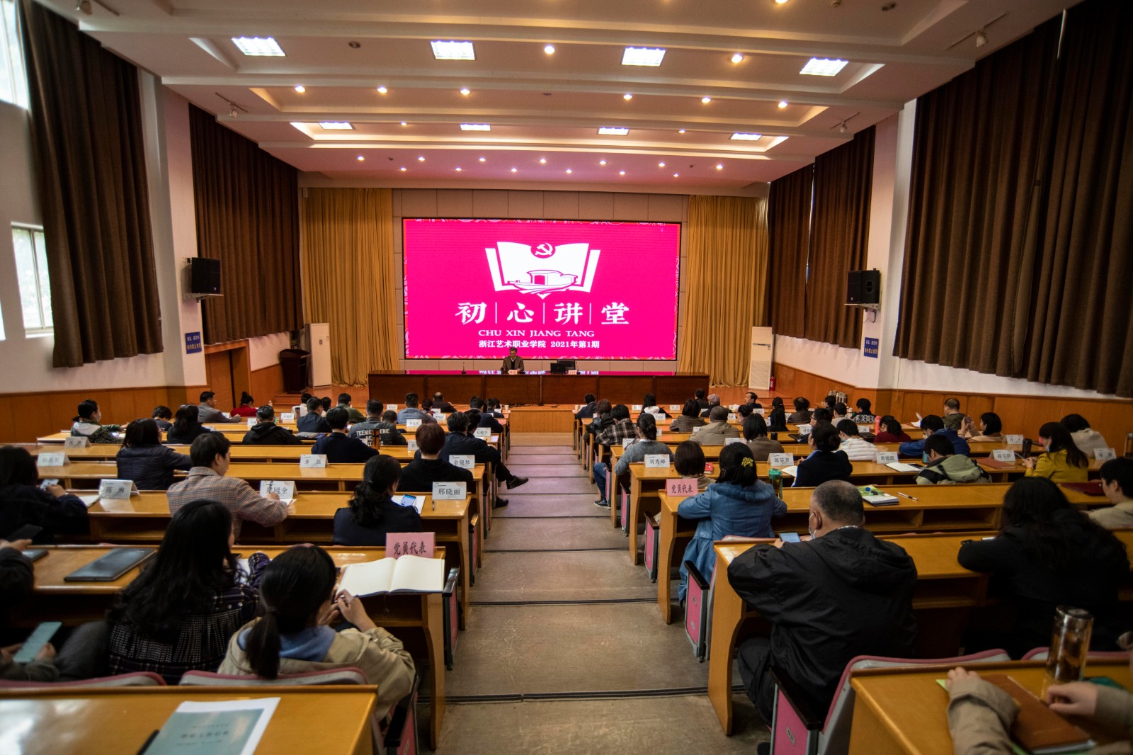 讲堂首先进行“比学赶超”展示环节,戏曲学院、舞蹈系、社会科学部负责人汇报开学以来工作情况、存在问题和对策思路,公布党政办、组织部、宣传部、财务处、总务处等职能部门相关工作进度排行榜,薛亮作“总结点评”环节。他指出,“初心讲堂”高举习近平新时代中国特色社会主义思想伟大旗帜,全面贯彻党的十九大、十九届四中、五中全会精神和全国全省宣传思想工作会议、全国全省教育大会精神,秉承“求真、尚美、精艺、修为”校训精神,坚持多元化、精品化、层次化原则,始终牢记为党育人、为国育才的初心使命,努力营造“你追我赶、创优争先”的良好氛围,按照习近平总书记对高等教育发展、职业教育建设尤其是立德树人的一系列重要论述要求,紧扣文化浙江、诗画浙江、高教强省建设战略目标和浙江教育现代化行动纲要,服务于人才培养、科学研究、社会服务、文化传承创新、国际交流合作,致力于培养又红又专、德才兼备、全面发展的中国特色社会主义合格建设者和可靠接班人。通过“比学赶超”,希望各部门树立紧迫感,切实把工作抓紧抓实,以更加良好的精神风貌和更加优异的工作业绩,推动学校“十四五”高质量发展,为文化浙江、诗画浙江和高教强省建设贡献浙艺力量,以优异成绩迎接建党100周年。