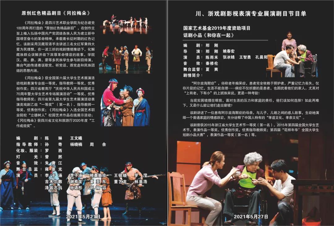 5月27日-28日,由中国艺术职业教育学会主办,中国艺术职业教育学会戏剧与影视专委会、四川艺术职业学院承办戏剧影视表演人才改革创新经验交流暨戏剧影视表演专业展演交流会在四川成都召开。会议旨在学习贯彻习近平总书记对职业教育工作的重要指示和职教大会精神,坚持立德树人,深化产教融合、校企合作促进艺术职业院校戏剧影视表演专业建设发展。