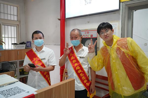 在濛濛细雨中,校领导来到报到现场关心慰问新同学并鼓励同学们:希望21届新生们好好利用大学时光,学有所成,学有所用。并且能在大学交到新的朋友,和老师融洽相处,处理好人际关系,度过美好的三年大学时光。