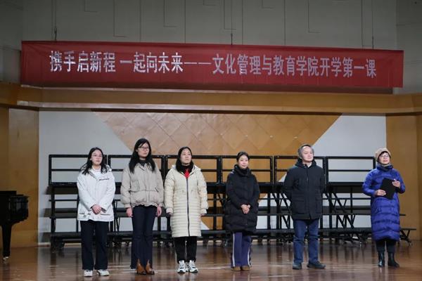 虎年启新程,一起向未来。2月21日,文化管理与教育学院“开学第一课”在音乐厅盛大举行,文教学院全体师生参加,党总支专职副书记钟黎主持。