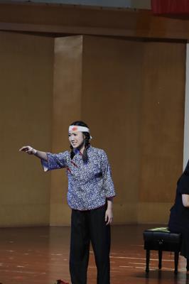 21歌舞班李佳倩演唱贵州民歌《摘菜调》、展示舞蹈《阿伽鼓》,既有活泼诙谐,短小精悍,说与唱相互穿插的民歌展示,还有别具一格的印地安舞蹈表演。