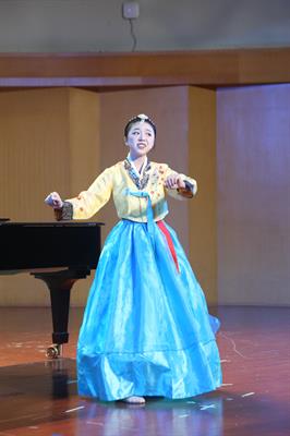 21歌舞班洪佳赐演唱《曲110驱张团》、展示傣族舞《傣泐》,既有浙江原创歌剧中激情燃烧的澎湃情感,也让人体会傣族舞的柔韧之美。