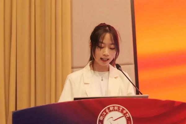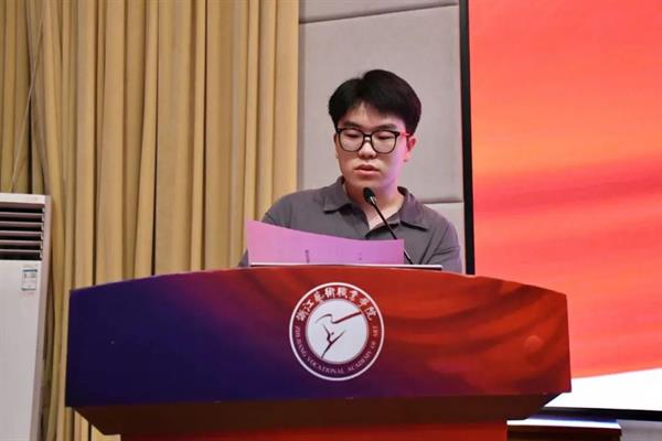 院学生会主席张锶悦做学生委员会工作展望报告,对于下一阶段的学生会工作,她希望全体团学干部时刻牢记“为学生服务”的根本宗旨,做学生们看得见、信得过的朋友,对于工作方向,要以思想建设为核心,打造积极向上的工作风貌;以服务群众为根本,打造贴近师生的工作模式;以文体实践促发展,打造学生喜爱的校园氛围。