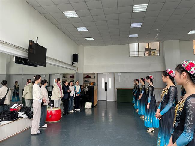 祖拜代·艾麦尔同学来到舞蹈学院观摩课堂,熟悉教学环境。舞蹈学院院长张星在欢迎仪式上表示,两校之间路虽远情相近,更因舞蹈的文化艺术交流而熠熠生辉,希望接下来的三个月学习祖拜代同学能融入班级、融入校园,融入浙艺舞蹈文化氛围,多体验校园文化,多观摩实践演出,拓宽视野,兼容并包,学有所成学有所获,并将有特色的新疆维吾尔族舞蹈韵味带给舞蹈学院的同学们。
