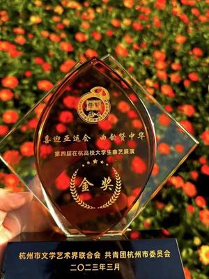 3月26日,由杭州市文学艺术界联合会、共青团杭州市委员会主办的第四届在杭高校大学生曲艺展演决赛在浙江水利水电学院举行。演教学院表演艺术专业原创相声《智能时代》与浙江大学、浙江传媒学院、浙江警察学院等高校节目进行决赛展演,在八个作品中脱颖而出荣获金奖。