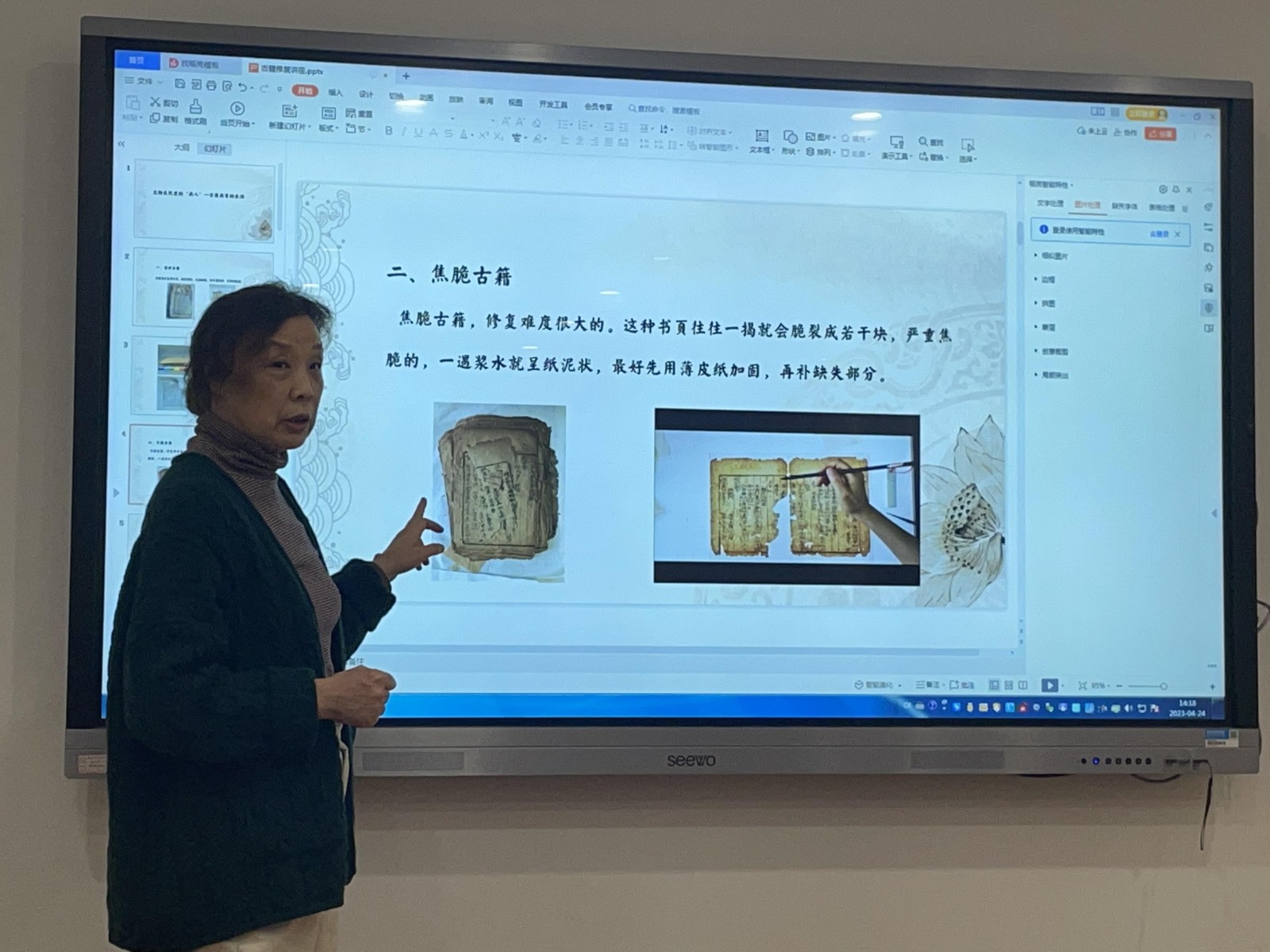 讲座使师生对古籍修复应遵循的原则、修复材料的选择、修复过程的注意事项有了进一步了解,对不同程度破损的古籍修复方案有了更深的认识。