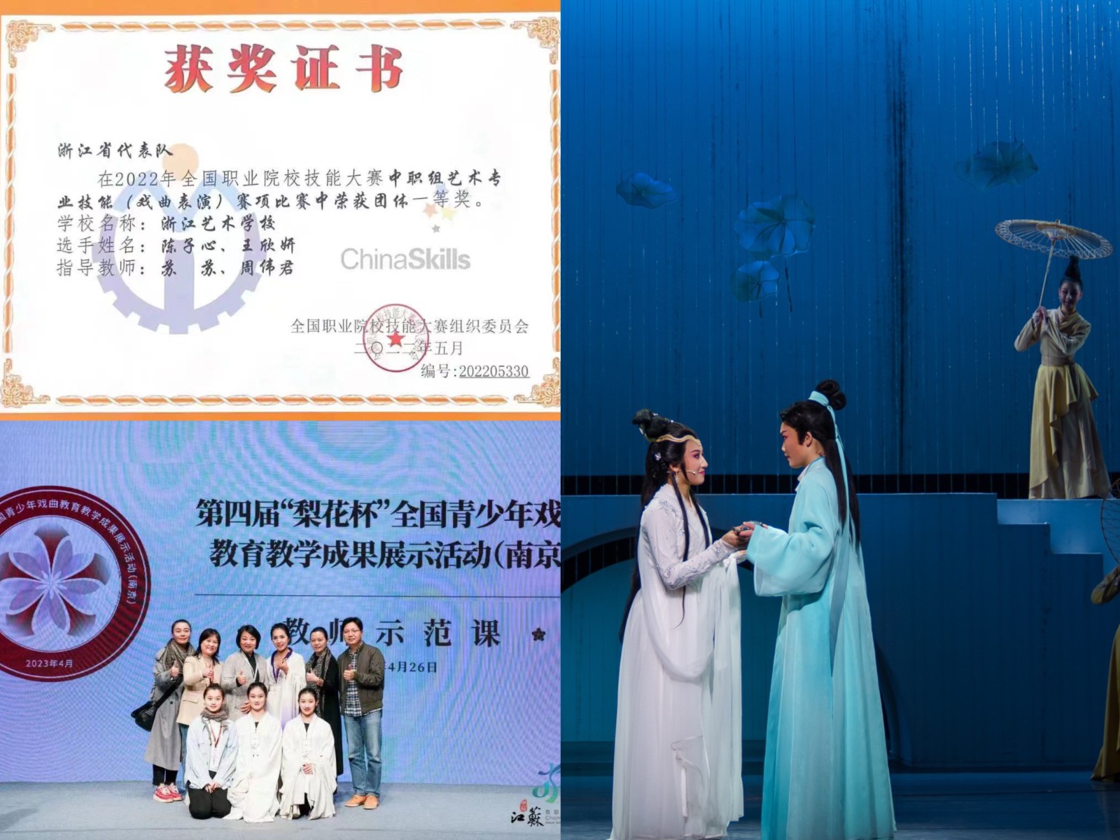 五月是春花烂漫的季节,在五一假期里,小花们没有一天休息,在指导老师的带领下紧锣密鼓排练节目。这是一支充满凝聚力和战斗力的青春力量,曾获校“成绩突出团支部”“先进班级”,蝉联“最美教室”等诸多荣誉。有的小花已在专业赛事活动中崭露头角,获全国职业院校技能(戏曲表演)赛项中职组一等奖,入围第四届“梨花杯”全国青少年戏曲教育教学成果展示活动等。本学期,她们完成了青春版越剧《断桥》的创排工作,获得业界和社会的一致好评。接下来,她们又将奔赴余杭区藕花洲大舞台,完成校地合作折子戏专场演出。她们用勤奋、自律践行“青春心向党,建功新时代”的青春誓言,如向阳之花般把青春的光彩照耀在光荣与梦想的远征,用青春的能动力激荡起澎湃春潮。