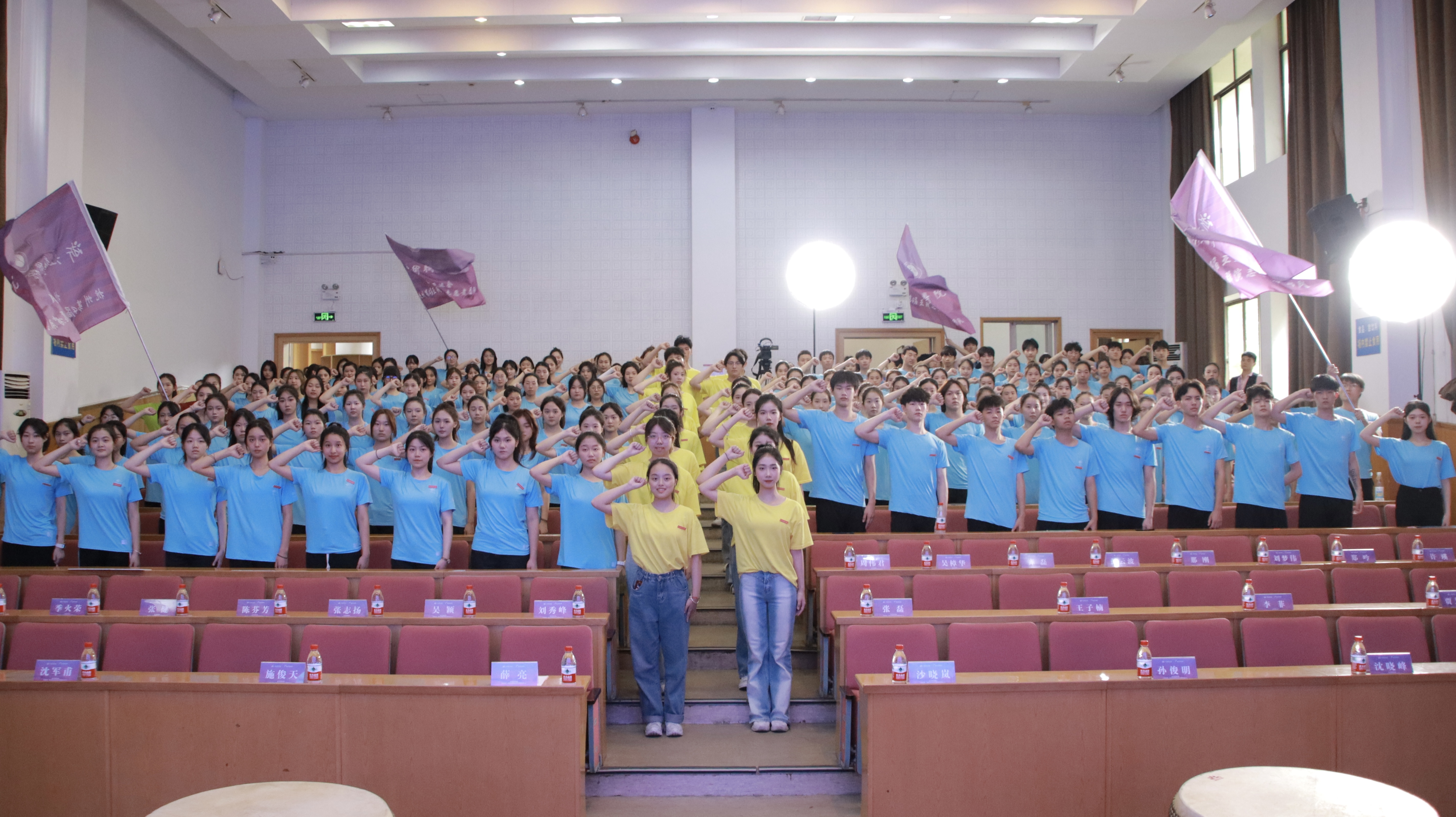 全体亚运会群演誓师宣誓:服务亚运,奋斗有我。助力梦想,青春闪耀。让我们以青春之力,为浙艺争光,为亚运添彩。
