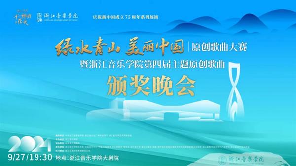 9月27日,由省委宣传部、省文化广电和旅游厅、省文联指导,浙江音乐学院联合安吉县委县政府举办的诗画江南活力浙江大美中华之“绿水青山·美丽中国”原创歌曲大赛暨浙江音乐学院第四届主题原创歌曲征集活动颁奖晚会在浙江音乐学院大剧院举行。